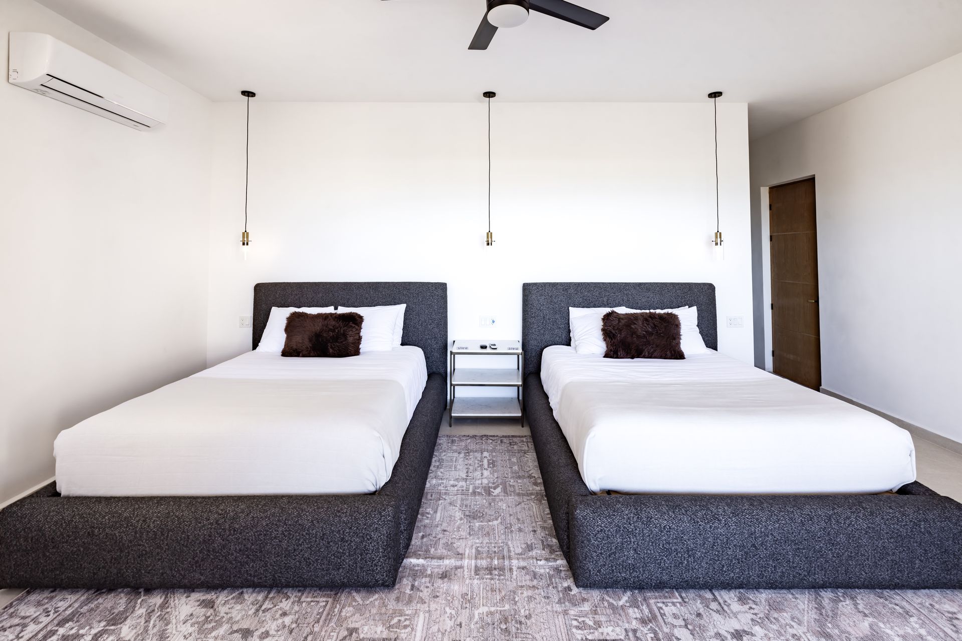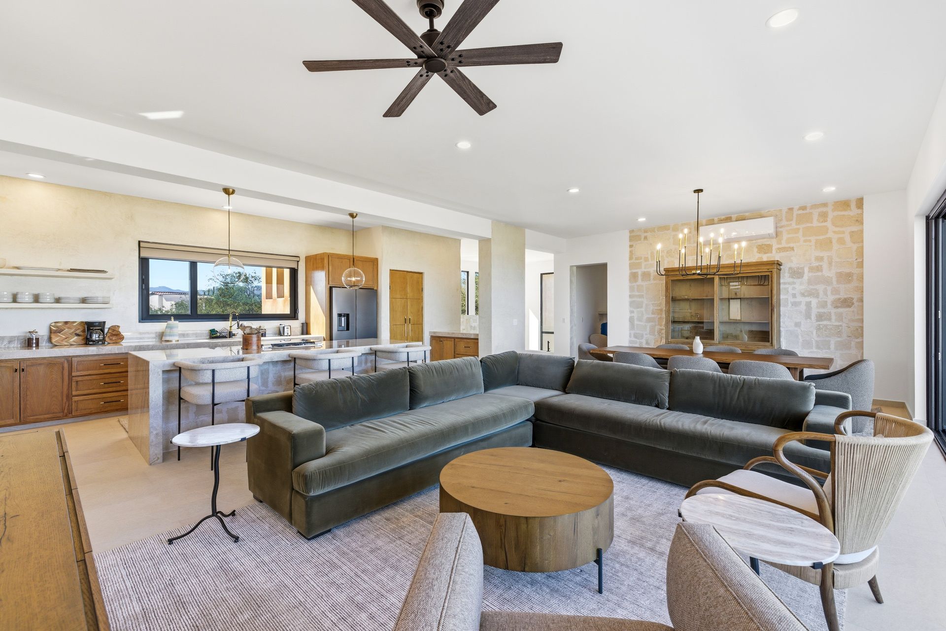 All bedrooms are designed as private suites, offering comfort, privacy, quality linens, and generous storage. Large windows and thoughtful layouts invite natural light throughout the day and maintain a constant connection to the surrounding desert.